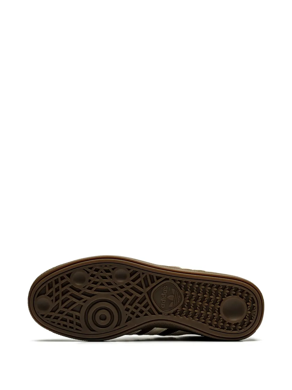 This iteration of the adidas Handball Spezial is made with a textile upper textured like corduroy for breathability. A dark green color forms the toe box and the area around the ankle, while the large T-shaped toe cap comes in a light green suede. Light green suede also forms the heel counter, and corduroy of the same color runs under the laces. The classic adidas three stripes logo appears on each side in white leather with brown textiles running between the stripes. The word SPEZIAL and the trefoil logo appear on the lateral side next to the top stripe. The heel counter is mauve leather with a white trefoil logo, and the cream-colored tongue also sports an adidas logo patch. A branded gum rubber outsole finishes out the look.