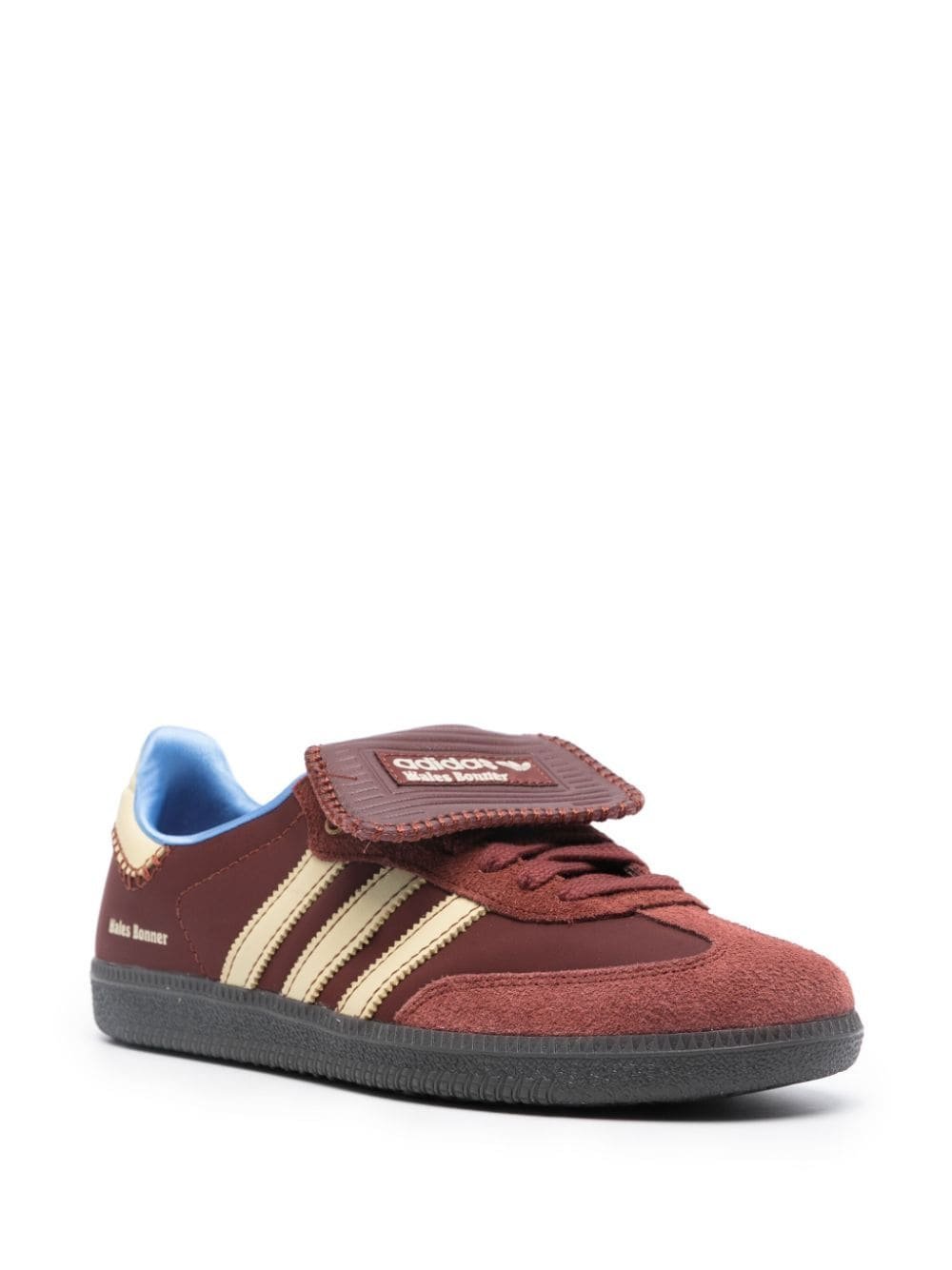 The Wales Bonner Fox Brown adidas Samba Nylon showcases the British brand’s contemporary interpretation of a classic. The low-profile silhouette boasts a Fox Brown nylon upper with a matching forefoot overlay in textured suede. Tan leather accents adorn the iconic 3-Stripes and rear tab. Adding a touch of contrasting color, blue nylon lines the collar. The lateral heel proudly displays ‘Wales Bonner,’ while dual branding graces the sock liner and fold-over tongue. A robust gum rubber cupsole forms the foundation of the sneaker.