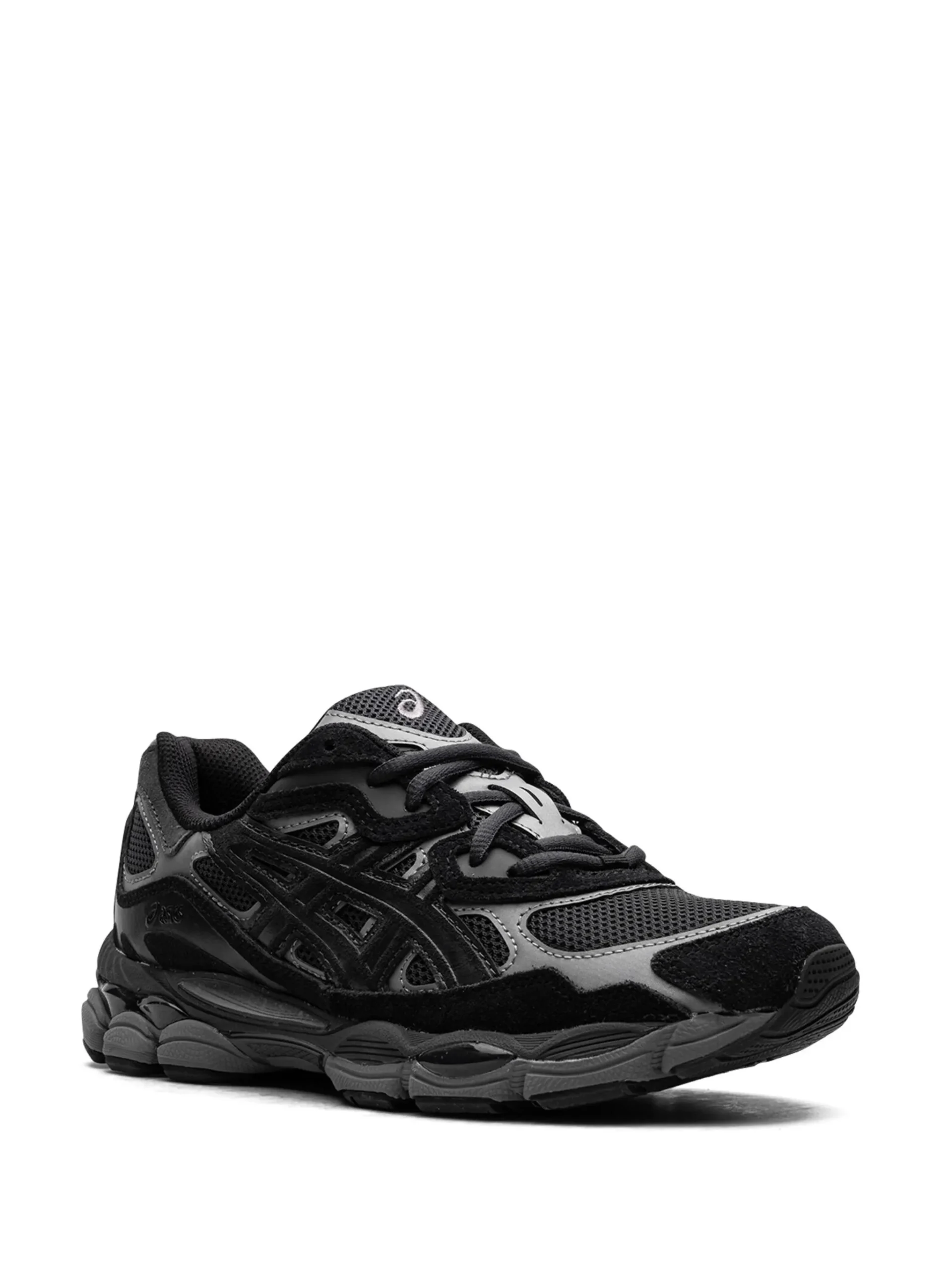 The Graphite Gray Black ASICS Gel NYC is designed to be a modern running shoe with retro vibes. The upper part of the shoe is based off the original GEL-NIMBUS 3 and contains various embellishments from the MC-PLUS V design. It has a black body that is composed of leather and mesh and features gray overlays. Lightweight foams are used for the base of the shoe to help with cooling.