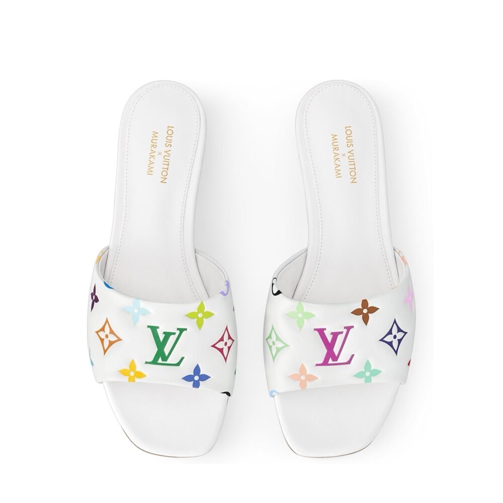 The 6AM flat sandal comes with a timeless classic design, a wide puffed loated leather front belt, and is easy to wear. This model is encommented with a multi-color Monogram, the design of which is inspired by the Louis Vuitton x Murakami collection, which updates the iconic signature of the house and blends it with the popular color range of Japanese artist Takashi Murakami. The magic of this design is completed by a luxurious leather outsole.