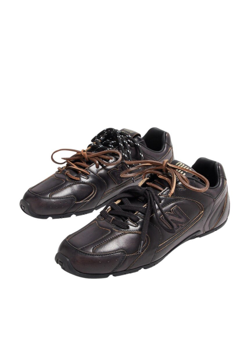 This exclusive style is the result of a collaboration between Miu Miu and New Balance. Miu Miu completely renews the structure, making it ultra-light, and plays with the materials. The logo completes the design with its iconic signature.