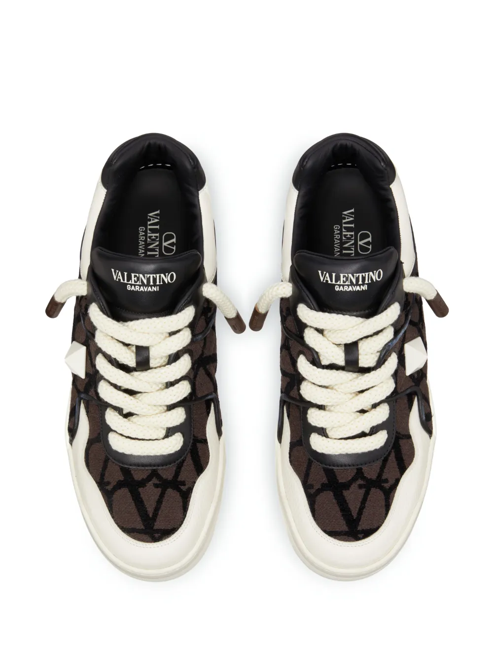 Valentino Garavani’s renowned VLogo Signature was first seen in 1968 and has become a true icon of the Italian fashion house since then. Decorating these low-top sneakers in a Toile Iconographe pattern, it is adorned with a white Maxi stud embellishment in semi-matte finish for a branding-focused aesthetic.